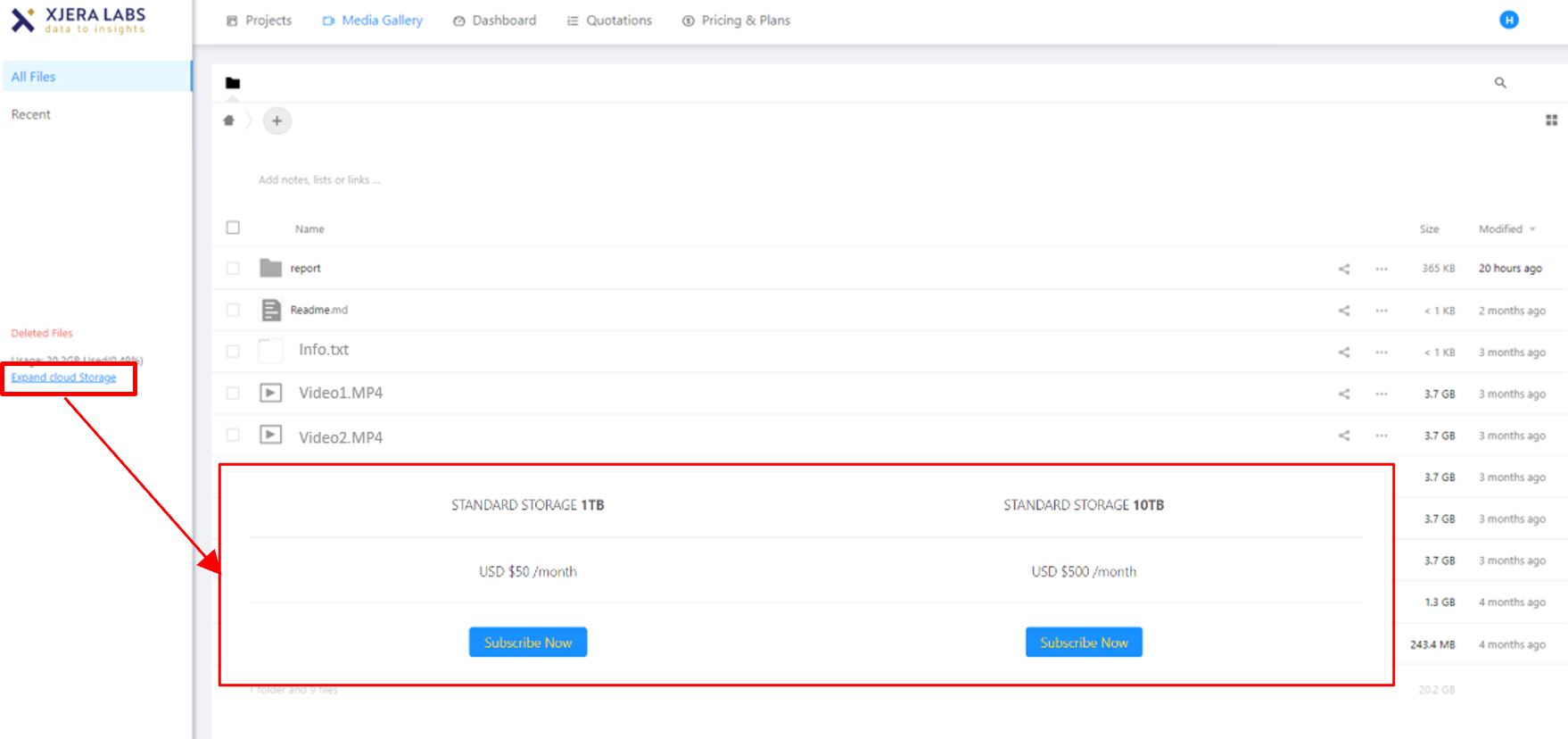 Additional Cloud Storage Space can be purchased. These are charged monthly and can be cancelled anytime.